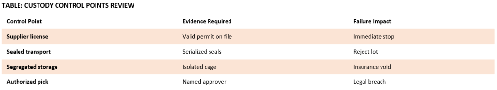 If custody cannot be proven on paper, the feasibility fails immediately. This table lists the controls that must be in place before approval.