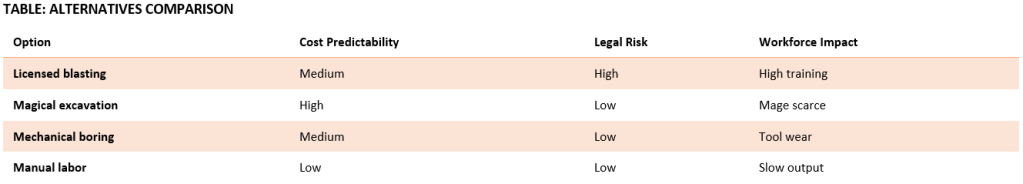 A feasibility study is incomplete without substitutes. This table supports risk-aware decision-making.
