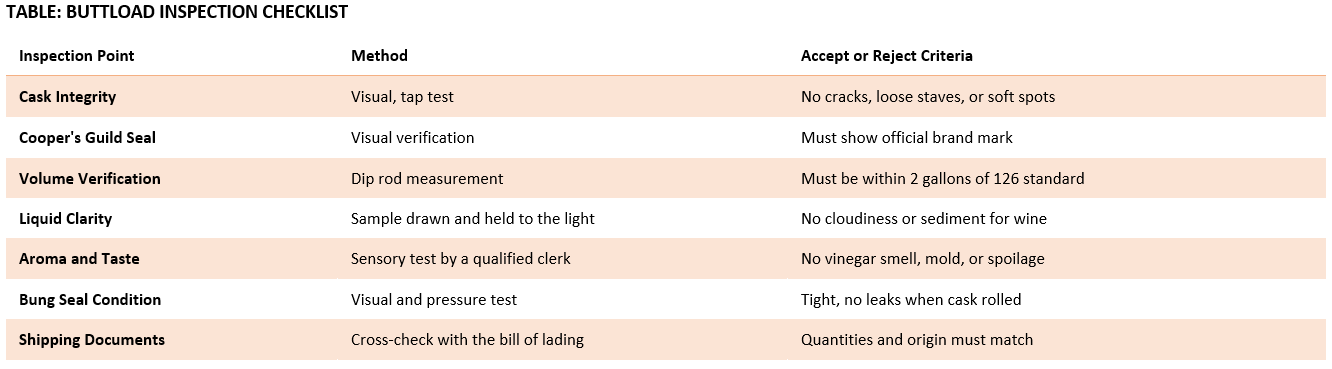 From an accounting perspective, buttloads simplify inventory tracking. Rather than counting thousands of bottles, the warehouse master counts casks. Each butt is a single inventory unit, though it may be converted for sales purposes.