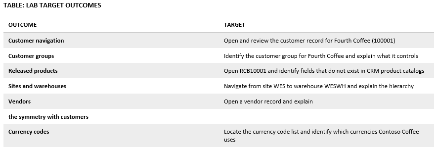 By completing this lab, we will be able to navigate six core F&O entity forms and explain the CRM-to-ERP mapping for each.